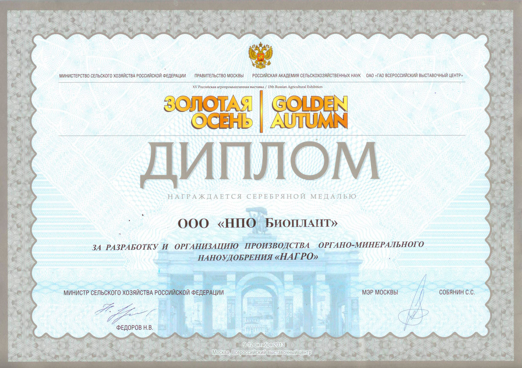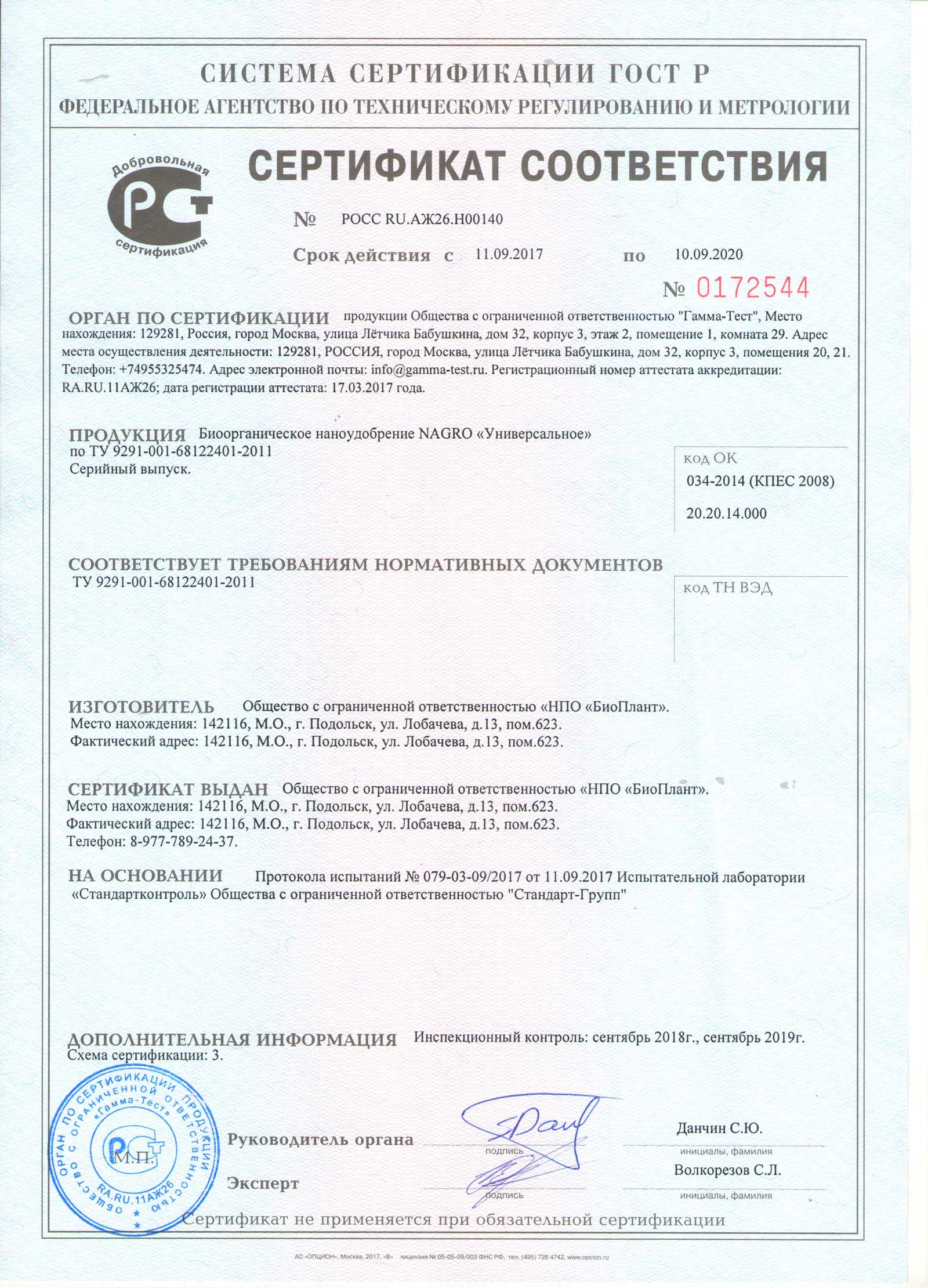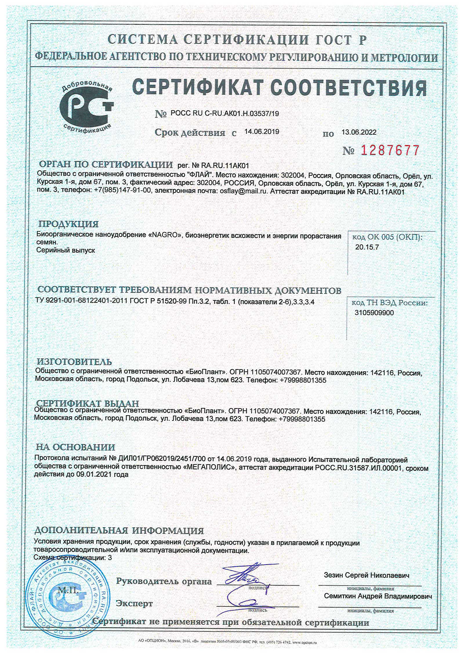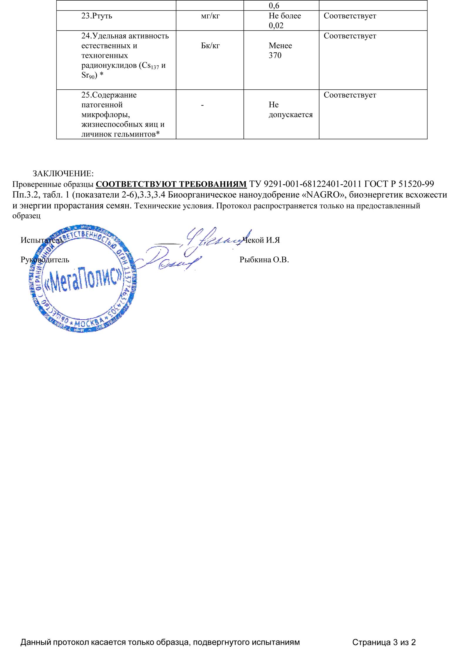 Результаты производственных испытаний Биоорганического наноудобрения Nagro биоэнергетик и Nagro универсальное.