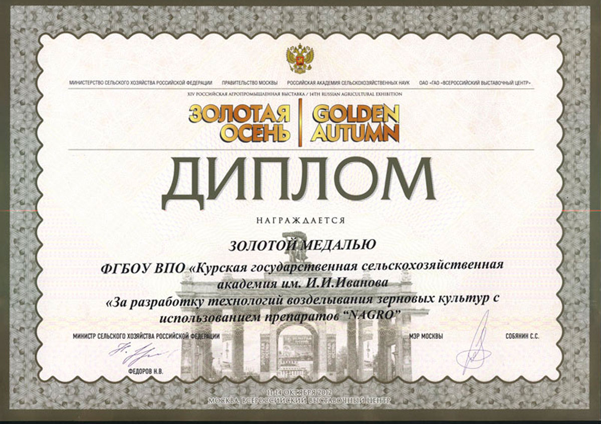 Отчет о результатах испытаний препарата Nagro на озимой пшенице в 2012 году.
